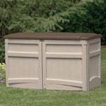 Let the Horizontal Storage Shed 4x3 provide you with a a compact, sturdy and reliable storage bin that can be placed just about anywhere on your deck, in your basement or garage or tight and otherwise unused spots in your yard. Control clutter with this efficiently sized storage shed. This storage box opens from both the top, which includes a prop bar, and from the front (double doors). It's just the right size for storing garden hoses, pool and deck supplies, outdoor cooking products, pool equipment, garden tools and more. The product is made from high quality resin construction, ensuring a long lasting products ready for outdoor elements.