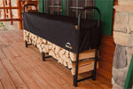 A great solution for storing and protecting your firewood. The rack is designed to elevate your firewood off the ground to allow for air flow and protection from moisture. Furthermore, the half cover design provides great ventilation to increase wood seasoning, while keeping the top dry. The high grade steel frame is 1-1/2" round, and is powder coated to protect against chipping, peeling, rust and corrosion. The base of the frame has reinforced spreader bars to provide strength and stability. The cover is a made of a highly durable polyester, and will fit cut wood up to 24" long.