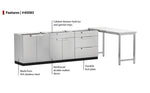 Two insert grill cabinets which fit most 28" to 40" insert grills, a sink cabinet with easy cut-out, pre-punched ports to connect to outdoor plumbing, and easy to assemble 304-grade stainless steel - restaurant quality countertops.