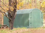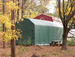 MDM Products Barn Style Buildings provide the best in instant and portable protection for any purpose. Typical uses include contractor workshop areas, equipment/material storage, and temporary work areas. Excellent jobsite protection of equipment, and rain protection to increase productivity. The barn style unit provides extra space along the top of the enclosure, with maximum height near the center ridge. The pre-drilled frame is easily assembled with minimal handtools. Unlike other products, no drilling or field cutting is required. All frame components are made from heavy galvanized materials. Main cover and doors are made from long life UV Resistant, Fire Retardant Polyethylene with woven backing.