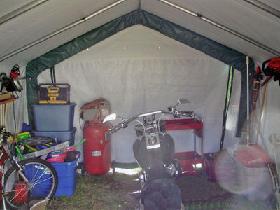 Rhino Instant Storage Shed House 12'Wx12'Lx8'HOur pre-drilled frames are easily assembled with minimal hand tools. (Unlike other products where drilling or field cutting is required). Main cover and doors are...