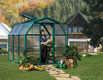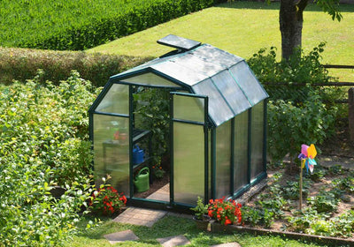 The Rion EcoGrow 2 Twin Wall Greenhouse is an economical choice for first-time greenhouse growers. It has all of the features of larger models in a more compact size. Manufactured with 4mm twin-wall polycarbonate roof panels and 6mm twin-wall side panels, the EcoGrow 2 offers superior strength, safety, light diffusion and great heat insulation. The heavy-duty, UV-protected resin frame is weatherproof and features simplified pin and lock assembly, while the translucent roof panels simply slide into place. The barn shape provides high headroom for comfortable gardening. Hinged door with latch and included roof vent provide excellent ventilation. Secure to concrete pad or heavy timber foundation.