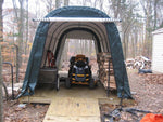 Shelterlogic 11x16x10 Round Style Shelter, Green CoverAn ideal backyard shelter for wood storage, or general outdoor storage. The reinforced framing is made with 1 5/8"" diameter steel, with bolt together...