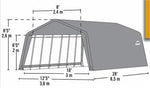 12x28x8 Peak Style ShelterA large, heavy duty outdoor shelter made to fit over sized vehicles such as RVs, boats, large trailers and SUVs. The all steel frame is coated with...