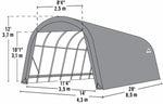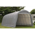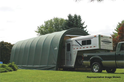 RV Shelter 15 x 28 x 12 Product DescriptionA large, heavy duty round-top outdoor shelter made to fit over sized vehicles such as RVs, boats, large trailers and SUVs. The...