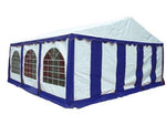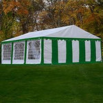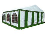 Turn your ShelterLogic Party Tent into a fully enclosed shelter with clear windows and striped end panels.