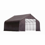 The ShelterLogic Garage has a solid steel frame that is coated with a DuPont thermo-set baked-on powder finish for great rust and corrosion resistance. Supplied with slip-fit connectors, swedged tubing and bolt hardware at its connection points, the garage has a woven polyethylene cover that is UV treated inside and out for resistance to the elements. The garage features ShelterLock stabilizer blocks at every rib connection to help add strength and stability to the frame.