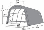 RV Shelter 15 x 20 x 12 Product DescriptionA large, heavy duty round-top outdoor shelter made to fit over sized vehicles such as RVs, boats, large trailers and SUVs. The...