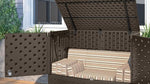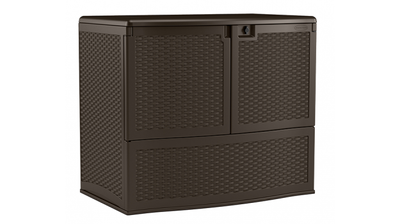 Suncast 195 Gallon Backyard Oasis Storage And Entertaining StationFeatures & Specification Generous capacity for storing large patio cushions while taking up the same small footprint as a traditional deck box...