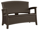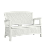 Features •Decorative wicker pattern enhances any decor •Conveniently stores outdoor accessories under seat •Multi-wall construction for strength and stability •Contoured air cushion back •Supports up to 450 Lbs. •Convenient built-in...